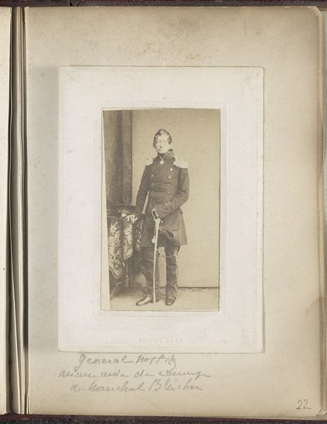 This albumen silver print, titled "Prince Moskova at Chalons," was created by Gustave Le Gray, though its precise date remains unknown. Le Gray, a key figure in early French photography, captures here more than just a portrait; he freezes a moment reflecting France's intricate social hierarchy and lingering imperial ambitions. This image was created in a time when photography was not just a recording tool, but a statement. We see Prince Moskova, posing with his uniform and sword, against what seems to be a provincial wall. The image is a window into France's Second Empire, under Napoleon III, a period marked by industrial growth, colonial expansion, and attempts to revive the glory of the Napoleonic era. To understand this photograph, we need to look into the aristocratic circles and how they wanted to be perceived. To me, this image also shows how photography was used to create a certain social standing. Art historians, like myself, use archives, journals, and even family records to understand the context behind such works. The meaning of an artwork, is not just in its aesthetic, it is in the story it tells about its time.