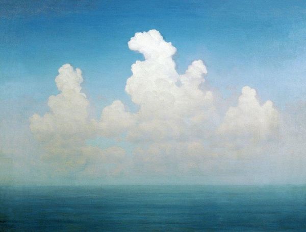 Editor: So, this is "Cloud" by Arkhyp Kuindzhi, painted with oil on canvas. There's a real stillness to it, almost dreamlike, the way the light filters through that central cloud. It makes me feel oddly calm, but also a little melancholic. What do you see in this piece? Curator: Ah, Kuindzhi! He had this uncanny ability to capture light, didn't he? It’s as though he understood the cloud’s very soul. What strikes me is how the romantic spirit blends with the burgeoning impressionistic touch. It's like a whisper of Turner, but with a uniquely Russian soulfulness. Don't you find yourself wondering if Kuindzhi stood exactly there, breathed that air, felt that fleeting moment? Editor: I do. It's like a captured feeling. How did he achieve such a glowing effect, do you think? Curator: Well, there are rumors swirling around how he played with bitumen underpainting, to play on the luminescence from the canvas' ground itself. Then consider that restrained palette...He forces us to ask ourselves what a cloud *is*, to *really see* a cloud. What he may be aiming to portray here, do you agree, might just be ephemerality itself? Editor: That's interesting! It hadn’t occurred to me. It felt so solid somehow, but ephemeral works, too. I was too busy getting lost in the light. I think I have new appreciation for that focus on the impermanence of a moment. Curator: Exactly. To feel a painting as much as you see it.