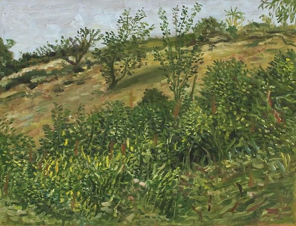 Lucian Freud, born in Berlin but working in Britain, made this painting called *Garden, Notting Hill Gate.* Freud, grandson of Sigmund, lived through the turmoil of the twentieth century, fleeing Nazi Germany with his family. Maybe that's why this garden scene feels so enclosed, a private world of dense greenery. You can almost feel the humid air, the weight of leaves pressing in. Freud was known for his intense, unflinching portraits, often of people he knew intimately. While this painting lacks a human figure, it shares that same quality of close observation and a kind of raw honesty. There’s nothing romantic or idealized here. We are seeing the garden as a space that is maybe overgrown. It reminds us that even in the most cultivated spaces, nature has its own wild, unruly power. What does it mean for a painter known for his portraits to turn his gaze on a garden? Maybe it’s a way of seeing the self reflected in the natural world, or finding a different kind of intimacy in the dense, green world.
