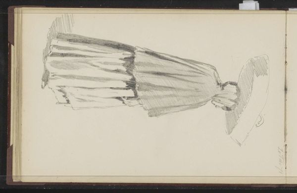 This is Cornelis Springer's "Vrouw met een hoed," held at the Rijksmuseum, an evocative study rendered with delicate pencil strokes. The composition, primarily monochromatic, emphasizes form through subtle gradations of light and shadow. Note how the artist captures the texture of the woman's dress and the intricate details of her hat, creating a sense of depth and volume. Springer uses line and shading to define the figure, while the surrounding space is left relatively blank, focusing attention on the subject. This intentional sparseness invites us to consider the interplay between presence and absence. Is Springer suggesting something about the nature of identity through the structural elements of the work? Observe the precision of the lines, which not only delineate the woman's form but also convey a sense of her presence. This focus on formal qualities enriches our understanding of the artwork. It serves not merely as a representation but as a carefully constructed visual statement.
