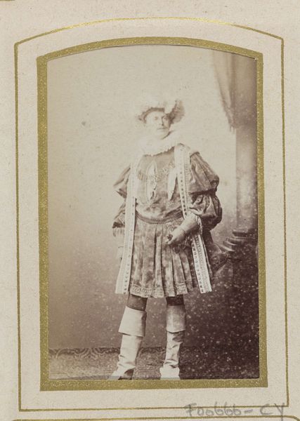Curator: Here we have Hendrik Anthonie Karel Ringler’s “Portret van een staande jongen bij een stoel,” a gelatin-silver print estimated to have been made between 1872 and 1879. Editor: The sepia tone immediately gives it such an antique feel. Look at the boy's pose! He looks stiff, maybe even a little resigned. Curator: It's interesting to consider the materiality here. The gelatin-silver process itself democratized photography somewhat, allowing for mass production. Think about how many portraits like this would have been made. What narratives about class or familial identity were being carefully constructed, and how? Editor: That's a good point. It reads as a middle-class attempt to mimic aristocratic portraiture, but through this newly accessible technology. The boy's outfit almost looks like a uniform, emphasizing a kind of ordered respectability. There’s a subtle power dynamic—a visual assertion of status and control during an era of immense social change. Curator: Absolutely. Consider the ornate chair, too—clearly a prop intended to signify wealth and sophistication. What was the social impact of suddenly being able to render your material surroundings with such precision, so much faster than painting? This object suggests that photographs began serving as records for emerging industries as a result. Editor: Exactly, and photography gave agency to subjects previously excluded. Looking at the labor involved - from the studio workers preparing the chemistry to the subject sitting for extended periods - it brings forth interesting intersections. What were his thoughts at that moment? Or did it matter at all, perhaps his role here was merely a signifier of larger family aspirations? Curator: He's so still, there in that era’s constraints! Thinking about those conditions can change how you view such historical photographs. Thanks to its relatively speedy methods of production, portrait photography soon turned into a cultural product. Editor: And still it can reflect the larger structures around race, gender, or ability. Analyzing those traces makes history not just about who made the pictures but who the image shaped—and whose stories were silenced. It challenges the traditional boundaries of art, inviting contemplation around societal values during the turn of the century and even present days. Curator: Precisely, and paying attention to the material conditions of its production gives us new opportunities to explore. Editor: It invites more dynamic ways to contextualize. I walk away with new considerations every single time!