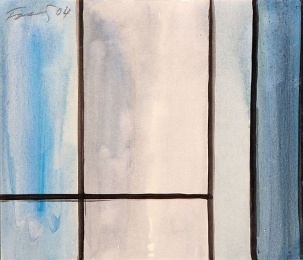 Editor: Jean Degottex’s "Depli bleu (II)" from 1979, an acrylic work, intrigues me. Its simplicity, with minimal blue lines against a large white space, gives me a sense of calm deliberation. What do you see in this piece? Curator: Formally, the painting establishes a visual rhythm using line and plane. The stark contrast between the diluted white field and concentrated blue strokes structures our reading. The composition can be understood as an arrangement of rectangular forms punctuated by the horizontal blue lines. Note how the placement is not arbitrary, each band seems carefully considered. Editor: Yes, the line placements definitely catch my attention! How would you describe Degottex's application of the medium, and why? Curator: The medium's materiality is of vital importance here: The application is rough and immediate; acrylic gives a slightly textured appearance that underscores the deliberate process. In breaking down representational conventions, the materiality itself comes forward. What is emphasized then is gesture, line, and their interplay within pictorial space. Degottex compels a close examination of purely visual components. Editor: I never would have interpreted the line and shape choices that way, thank you! Curator: The process of formal reading in turn emphasizes the intrinsic value of such artistic practice. A fruitful exercise indeed!