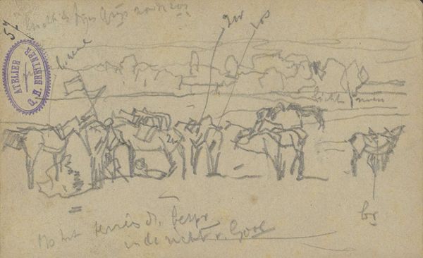 This sketch by George Hendrik Breitner, now held at the Rijksmuseum, offers a glimpse into the martial life through the figures of soldiers and horses amidst a landscape. The presence of soldiers, especially cavalry figures, immediately evokes themes of power, order, and potential conflict, common in art across eras. Consider the horse, a symbol of nobility and military prowess since antiquity, often linked to virility and untamed strength. We find echoes of this symbolism in equestrian statues from ancient Rome to the Renaissance, where rulers are depicted astride their steeds, embodying control and authority. The evolution of the horse motif illustrates how symbols adapt; from emblems of raw power to indicators of sophisticated governance. Perhaps, subconsciously, Breitner captures a moment of calm before a storm, the soldiers embodying a collective tension, hinting at the ever-present possibility of disruption, deeply ingrained in our shared human experience. Such imagery invites us to ponder the cyclical nature of history, where symbols of power and conflict continually resurface.
