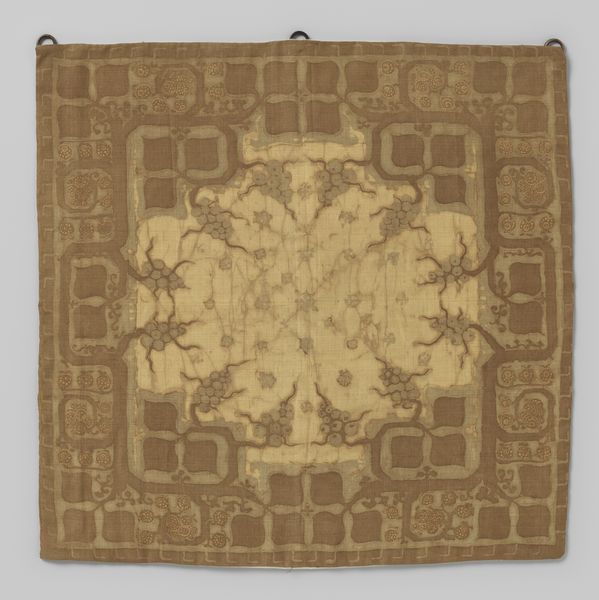 Curator: The textile before us is "Uncut Yardage (Dress Fabric)," a piece that potentially dates from between 1644 and 1911 during the Manchu dynasty in China. The museum categorizes it as weaving. What strikes you first? Editor: There's a restrained elegance in the color palette. It's mostly cream and tan, and very subtly patterned, yet the dragon motif still conveys power. Curator: The dragon motif indeed is rich in meaning. Historically, the dragon served as a symbol deeply entwined with Imperial power in Chinese culture. Wearing fabrics adorned with dragons became a visible declaration of social standing, reflecting hierarchical values. Editor: Right, this wasn't just about keeping warm. So how would its material composition relate to these cultural symbols? The technique of weaving – how long did this yardage take to produce, and who wove it? How did the process contribute to that reading of power? Curator: Those are essential questions. Textile production involved numerous laborers, from silk cultivation to the complex weaving itself. Access to such elaborate textiles marked social and economic disparities. It would mean something very different worn by royalty versus a merchant. Editor: Given the labor and materials, this textile becomes more than just surface ornamentation. We should look closely at that labor embedded in the material as a marker of class and power structures, as well as its function and intended consumer, as a tangible aspect of this cultural value system. Curator: Considering "orientalism", one might view this work within a complex frame. How do we interpret this today as a possible reflection of that historical moment or perhaps of a Western gaze on Chinese artistry? Editor: The questions surrounding its display, interpretation, and commodification of the work for Western audiences also warrant analysis in today’s market. Curator: Indeed. Analyzing this work allows us to examine the convergences between cultural representation, craft traditions, social values, and labor history. Editor: And appreciating that helps deepen our interaction and understanding. Curator: Precisely. There's always so much to uncover!