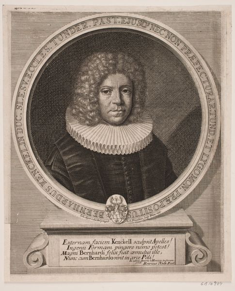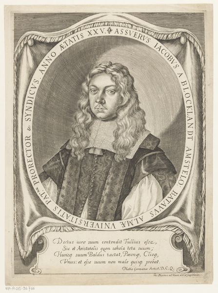 This is Johann Georg Mentzel’s “Portret van Heinrich Wurtzer,” created sometime between 1716 and 1743, and made with etching. Mentzel, a German draughtsman and engraver, was working in a period defined by rigid social hierarchies. The portrait presents Heinrich Wurtzer, a pastor, framed by symbols of status. The intricate frame, the wig, and the books subtly communicate Wurtzer’s privileged position within his community. The very act of commissioning a portrait was a statement of social standing. Consider what it meant to be represented in this way. How does it feel to have one’s identity so publicly and permanently displayed? Portraits like this one weren’t just about physical likeness, they were about constructing a persona, carefully curated to project authority and respectability. Wurtzer's identity as a religious leader is interwoven with his social status, a reflection of the power structures inherent in 18th-century society. Think about what's included in this portrait, and equally, what isn't. What elements contribute to our understanding of Wurtzer and his time?