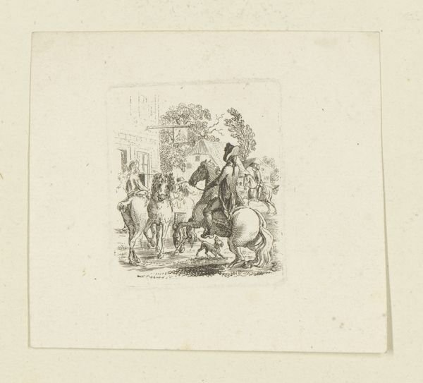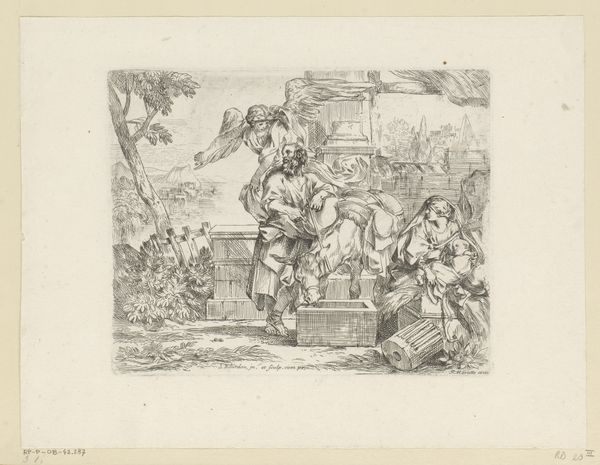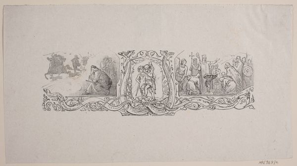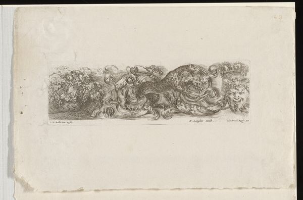 Curator: This engraving by Pierre Soubeyran, dating to 1745, presents an allegorical scene. Editor: It’s immediately striking – all that fine, precise line work. It gives the whole image a crisp, almost ethereal quality. And there’s such a focus on texture, from the floral border to the creature's fur. Curator: Precisely! It encapsulates Baroque sensibilities, a period defined by opulence and dynamic expression. What we see here is an allegorical representation involving a woman—perhaps representing abundance— surrounded by putti, a unicorn, and a lamb. Typical symbolic figures for this era. Editor: Yes, and considering this is an engraving, a medium that relies so heavily on the craftsman’s skill, I’m interested in the means of production. How were these lines physically created? What tools were used? The quality suggests high craftsmanship for consumption by a relatively affluent audience. Curator: Context is everything. These allegorical scenes were popular for conveying complex ideas in visual form. Think about the sociopolitical role – engravings allowed for wide distribution, making knowledge and narratives accessible across society. This specific image plays into those symbolic narratives favored by the elite. Editor: True, but let's think about materiality beyond the symbols. The paper, the ink, the physical act of pressing. Each contributes to the meaning, especially within a society where handcrafted items were valued for their labour and material cost. What paper would Soubeyran have used and who controlled the commerce in the material. Curator: Absolutely. What stands out to me is how the artist utilized allegory as a powerful tool. He engaged with the artifice of image-making, where visual language held a potent role. It's fascinating how political and philosophical notions filter through this cultural lens. Editor: Well said. I see the lasting value is this print lies not only in what it represents but also in what it is, an object born from specific labour processes, reflecting specific socio-economic conditions. Curator: A beautiful insight—we are seeing the layering of symbolic languages as cultural capital in a global network, right down to its material origins. Editor: Indeed!
