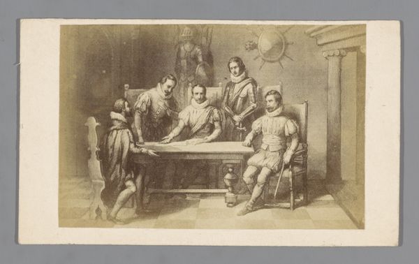 This photographic reproduction captures an anonymous engraving of Johan van Oldenbarnevelt receiving his sentence in 1619. The printmaking process—likely intaglio, where the image is incised into a metal plate—demands a high level of skill. Each line meticulously etched contributes to the scene's somber atmosphere. Engraving was not just a means of artistic expression; it was also a crucial tool for disseminating information and propaganda in the early modern period. Prints like these allowed for the widespread distribution of images and ideas, shaping public opinion and collective memory. The very act of reproducing this image through photography further extends its reach, democratizing access to a pivotal historical moment. Consider the labor involved: from the engraver's precise handwork to the photographer's technical expertise. The making of this image is laden with social and political weight. By understanding the processes of production, we gain insight into the power dynamics at play and challenge the traditional distinctions between art, craft, and historical record.