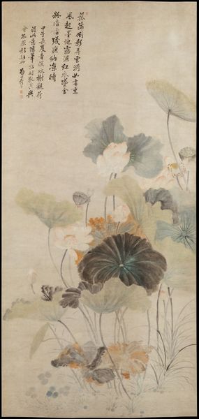 Editor: We are looking at "Birds and Narcissus" by Suzuki Harunobu, a print dating from sometime between 1725 and 1770. The palette is wonderfully muted, and the composition feels so airy and delicate. What sort of ideas or cultural references jump out at you in this work? Curator: I'm immediately drawn to the symbolism, particularly in the juxtaposition of birds and narcissus. Narcissus in Japanese art often signifies ego, self-absorption, even unrequited love. The birds, on the other hand, might represent freedom, joy, and connection to the natural world. Do you see that tension playing out visually? Editor: I do. The bird on the ground seems separate, almost melancholic, compared to the ones in flight. Curator: Exactly. The image seems to be tapping into cultural memory regarding mortality and transience—common themes in Ukiyo-e prints. Consider also the presence of narcissus during particular times of the year; its connection to rebirth as it flowers in winter adds further layers of meaning to the scene. The birds coming and going serve as counterpoint to these cyclical meanings. Does the perspective give you any other thoughts? Editor: It does seem to lack a Western sense of depth, creating almost a dreamlike flatness. The background feels close, emphasizing the foreground elements. Curator: That flatness reinforces the symbolic weight. By minimizing realistic depth, Harunobu focuses our attention on the interplay between the symbolic meanings of the flora and fauna. What did you find most striking about it? Editor: The layers of meaning woven into what appears, at first glance, to be a simple nature scene are remarkable. Curator: Precisely, demonstrating the power of visual symbols to carry complex cultural narratives. It has certainly expanded my thinking too.