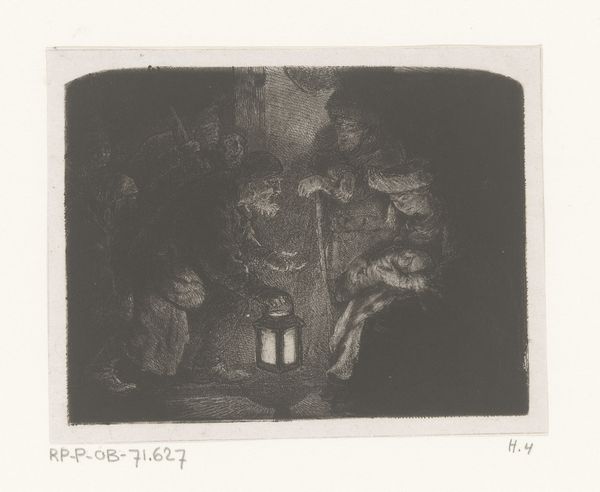 Rembrandt van Rijn created this print, Adoration of the Shepherds: A Night Piece, using etching and drypoint. Made in the Dutch Republic, it offers a window into the religious and social sensibilities of the 17th century. The print depicts the biblical scene of the shepherds visiting the newborn Jesus. But it's the image's shadowy quality, achieved through the printmaking techniques, that is particularly interesting. This obscures details, creating a sense of mystery. It draws the viewer's attention to the expressions of awe on the faces of the figures. The choice to depict the scene at night, along with the humble setting, reflects the cultural values of the time. The Dutch Republic valued piety and humility. Rembrandt frequently challenged the established norms of art. He often chose to depict biblical scenes with ordinary people in everyday settings, rather than idealized figures in grand surroundings. To fully appreciate the work, one can delve into historical texts, religious studies, and Rembrandt's biography. This will help us to reveal the social and institutional contexts in which this image was created.