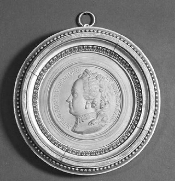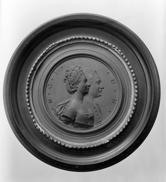 Curator: This is Giovanni Battista Nini's rendering of "Suzanne-Jacqueline Poupardin, Madame Perrinet de Faugnes," a delicate medallion presented in profile. Editor: There's a certain somber elegance to it, almost austere in its monochrome palette. I wonder, what materials were employed here? Curator: The original appears to be made from a mold, probably terracotta or a similar fired clay, offering a sense of permanence. Think of the labor involved in creating the mold itself. Editor: It is fascinating to see such a detailed portrait rendered in what appears to be such a humble material. The textures, so carefully modeled. Curator: Indeed, the formal restraint enhances the subject's noble bearing. It offers a study of class and posture through simple design. Editor: I am still captivated by the physical process of creating such a delicate impression, transforming earth into art. Curator: Quite. It gives us a way to see the work not just as a portrait, but as a cultural artifact, revealing so much about its time.