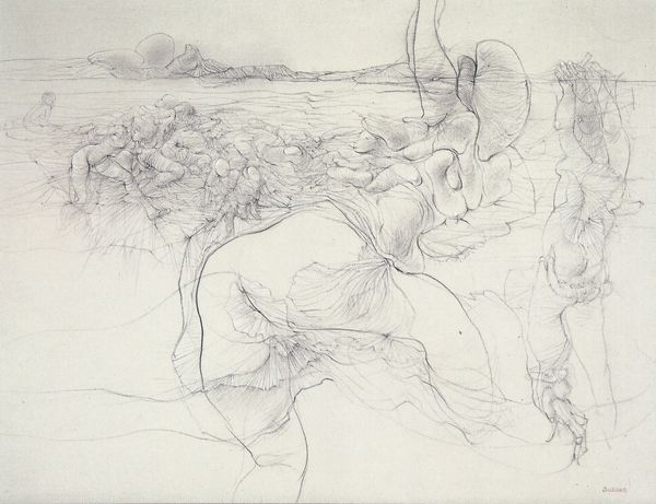 Richard Oelze's "Z 74" presents us with a surreal landscape rendered in graphite. It's a disorienting composition of ambiguous figures and forms merging with the natural environment. Oelze came of age in Germany during the interwar period, a time of immense social and political upheaval that shaped the development of Surrealism. In "Z 74," he eschews straightforward political commentary. Instead he engages with the psychological dimensions of human experience in a time of conflict. The dreamlike quality and unsettling imagery reflects the anxieties of a society on the brink of collapse. Oelze also spent time in the Bauhaus, but soon turned away from its utopianism. He felt an affinity for the irrationality and emotional intensity of Surrealism. To truly understand works like this, we need to look at historical and biographical sources that shed light on both the artist and the world in which he lived. By exploring the relationship between the internal world and the external realities, we can appreciate the painting’s lasting power.