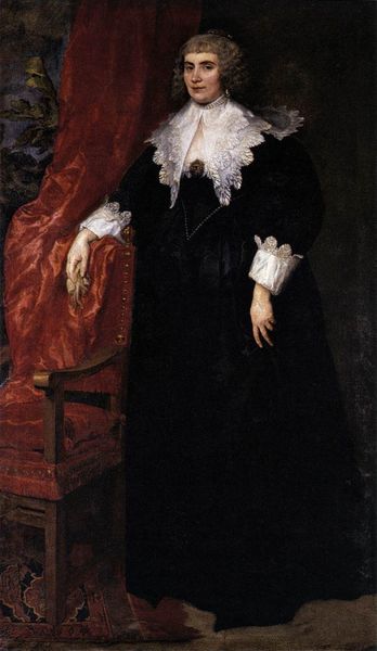 Editor: This is "A Portrait of Helena Modjeska Chlapowski," an oil painting by Carolus-Duran. It’s quite striking; the dark clothing and fur contrast beautifully with the soft pinks of the flower and scattered petals. What stands out to you when you look at this piece? Curator: I’m immediately drawn to the velvet of the sitter's gown. Consider the cost of the material, its social implications in the late 19th century. Velvet signified luxury and status, indicating the sitter's position. Think about the labor involved in its production, the trade routes, the workshops. Editor: That's a fascinating way to look at it, focusing on the actual materials. So, the velvet tells a story of wealth and global commerce. What about the fur? Does that factor into this material reading? Curator: Absolutely. Fur, like velvet, speaks to consumption and the exploitation of natural resources. The fashioning of this garment relies on the labor of trappers, tanners, and seamstresses. How does the application of these precious resources transform a simple portrait into an item of social and financial impact? It speaks volumes about the relationship between art, commodity, and class. Editor: It's interesting how what seems like just a portrait can open up into a conversation about economics and labor. I hadn't really considered all the work and resources tied up in creating what’s depicted in the image. Curator: Exactly! And how these materials, chosen and arranged, affect our reading of the sitter’s identity, reflecting not only her personal characteristics but the larger societal forces at play. Editor: So, looking beyond the surface representation to see the underlying networks of production and consumption gives the portrait a new, richer meaning. Thank you for shedding light on that. Curator: It's a perspective that brings art closer to the everyday, revealing the human toil embedded in even the most seemingly rarefied objects.