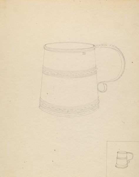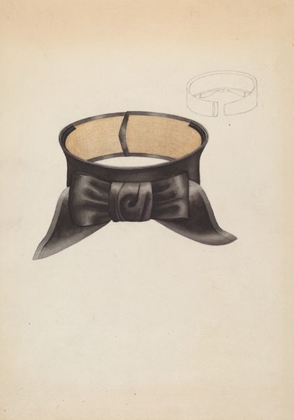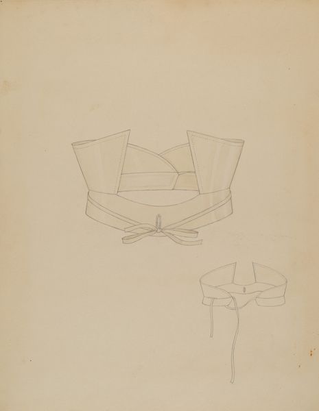 Curator: Here we have Edna Rex's "Knee Buckle," a pencil drawing on paper dating to around 1937. It's a seemingly simple study, yet potentially rich in social commentary if we dig a bit deeper. Editor: It's quiet, almost hushed. The buckle rendered so delicately… like an echo of something once gleaming and ornate now reduced to a ghostly trace. There's a palpable sense of absence to it. Curator: Absence perhaps mirroring the time? During the late 30s, fashion shifted drastically. Utility and austerity took precedence, partly as a response to the economic hardships of the Great Depression. This could be interpreted as a subtle commentary on those changes. The knee buckle was once an indicator of status and extravagant consumption. Editor: The rendering emphasizes the materiality of the buckle, too. You see the almost hesitant pencil strokes suggesting its form and also maybe evoking a sense of craft, of the hand. Its isolation on the page isolates those elements further. Curator: Absolutely. Edna Rex's work often depicted ordinary, functional objects—artifacts of everyday life. Museums were beginning to champion such subjects. Consider also how the Federal Art Project was employing artists to create images that documented American life during this period. So her decision to represent something like this, even in a refined manner, elevates the everyday. Editor: Makes you think about who made it, too, right? How were these things manufactured? The division of labor. The consumption practices around adornment. Curator: Precisely. The image carries all these socio-economic undertones beneath a surface of minimalist presentation. How fashion reflects social conditions... how taste transforms labor. And a piece like this, so subtly executed, allows space to meditate on these deeper layers. Editor: It really highlights how humble materials, like pencil and paper, can represent an object with such lingering power. I'm drawn to the almost forensic quality of the draftsmanship itself. Curator: Indeed, a quiet drawing speaking volumes about its place, its time. Editor: A material record offering broader insights.