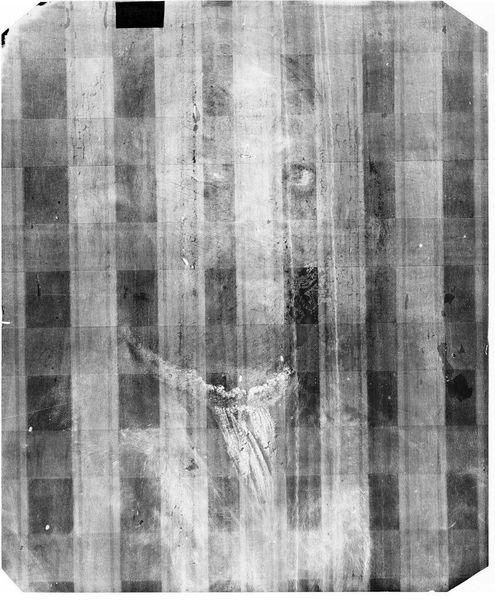 Editor: This is an X-radiograph of "Coronation of the Virgin" by Sano di Pietro. It's fascinating to see the layers beneath the surface, like uncovering hidden stories. What symbolic weight do you see in this image? Curator: The X-ray reveals more than just pigment; it exposes cultural memory. Notice how the halos persist, even through the X-ray. They're potent symbols of divinity, but also continuity, reminding us how certain visual languages endure. Editor: So, the persistence of these symbols reinforces their lasting power? Curator: Precisely. The X-ray, in a way, becomes a modern palimpsest, revealing how the "Coronation" narrative continues to resonate, transformed yet unbroken. What does that say about us? Editor: I never thought about an X-ray revealing such layered meanings. Thank you! Curator: My pleasure. It's a reminder that even the most technical images are laden with cultural echoes.