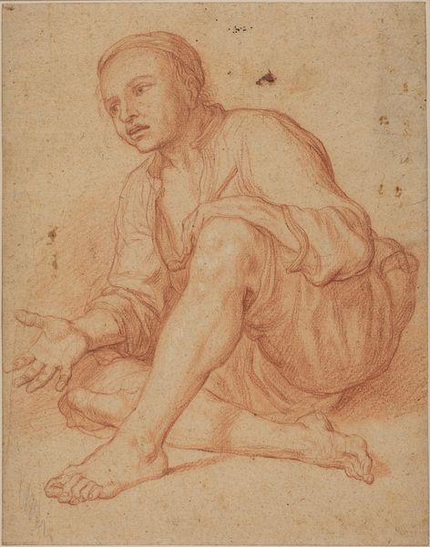Editor: This is "Study for an Infant Christ," by the School of Raphael. It's a small drawing, about 4x3 inches, at the Harvard Art Museums. It's lightly sketched, but so full of life! What strikes you about this piece? Curator: It's a whisper of a drawing, isn't it? Like a fleeting thought captured on paper. To me, it's about the potential, the "Christ-ness" waiting to bloom within this chubby infant. Do you see how the artist focused on the face and hands? Editor: I noticed the hands. They seem almost… knowing. Curator: Exactly! It's as if the artist is hinting at the future, the weight of destiny held in those tiny palms. Maybe they knew what was waiting in the verso of the drawing. Editor: That's beautiful! I hadn't thought of it that way. Thanks for pointing that out!