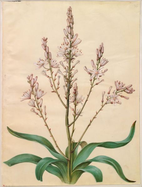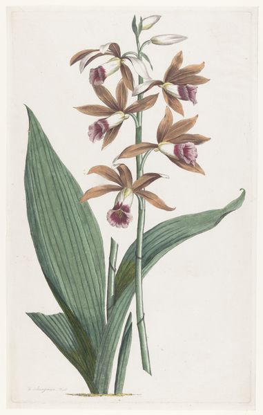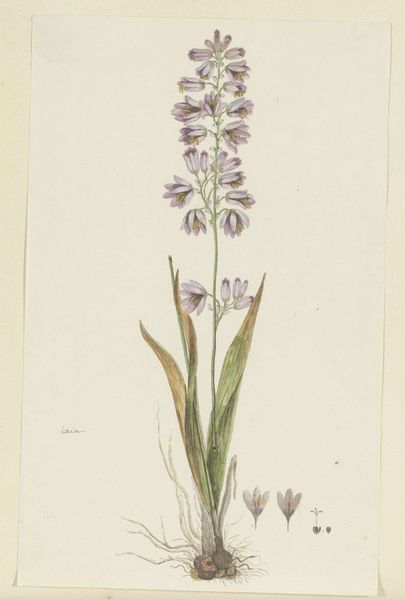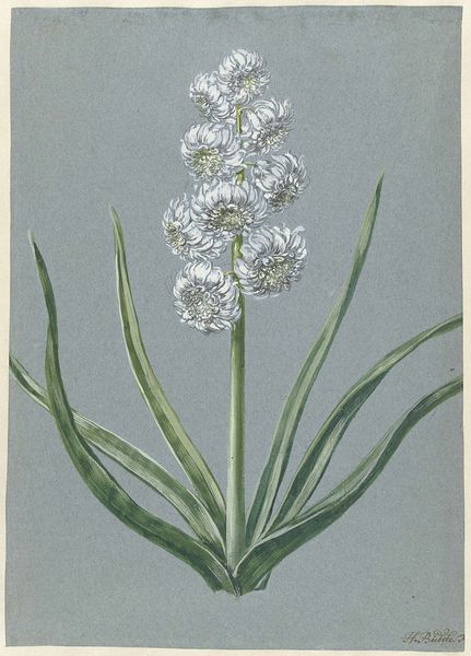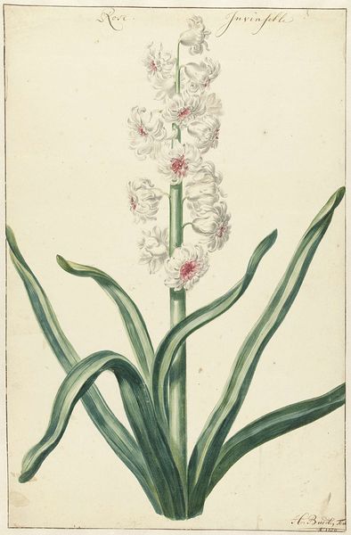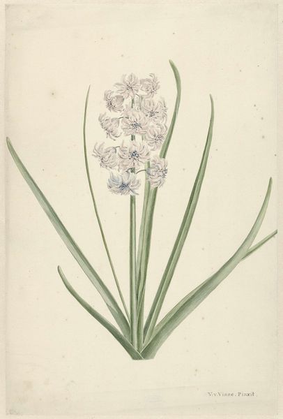 Abraham Hendrik van Beesten created this botanical drawing of a pink and white hyacinth, named "De rozewitte hyacint Staaten Generaal", during the 18th century, when the Dutch Republic was a major center for botanical studies and the cultivation of exotic flowers. During this time, botany was more than a scientific pursuit. For the Dutch, it was intertwined with commerce and national identity. The careful cultivation and depiction of flowers like this hyacinth speak to a sense of cultural pride and economic power. It reflects a society deeply invested in natural science and the visual representation of the natural world. The States General, referenced in the title, were the governing body of the Dutch Republic. Giving the flower the name of the States General elevates its importance, associating it with the political and economic stability of the nation. In the 18th century, owning rare and beautiful flowers like the hyacinth was a status symbol. Van Beesten's artwork serves as both a botanical record and a reflection of the values of the Dutch Republic.