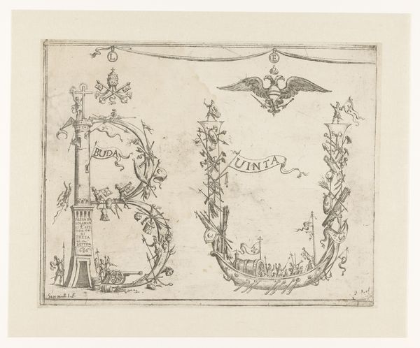 Curator: This is "Ornamentele omlijstingen en cartouche", which translates to something like "Ornaments, Frames, and Cartouches." It's an ink and pen drawing by Heinrich Hugo Coentgen, made sometime before 1785. Editor: Intricate, isn't it? Like a frosty breath on a windowpane, or some elaborate cake decoration. I feel like I'm peering into the past, into a world where detail and flourish reigned supreme. It's intensely... fussy, yet fascinating. Curator: Fussy, yes, and very much of its time. These kinds of ornamental designs were incredibly popular. Coentgen, as an engraver, was catering to a demand for decorative elements that could be adapted for all sorts of things, from furniture to architecture. Editor: So, it's almost like a page of clip art from the Baroque era? A stencil for the ambitious craftsman. I like how these cartouches—these little framed areas—float amidst the swirling vegetal forms. Did each of these serve a specific purpose? Curator: In principle, yes. The central cartouche is meant to hold text, probably an inscription or a coat of arms. The surrounding ornament would then amplify the importance, adding to the overall message. Think of it as visual rhetoric. Editor: Visual rhetoric! I love that. But there's a tension here, isn’t there? All the details fight for attention. The eye doesn’t know where to land. Is this design meant to highlight or obscure? Curator: Good question. The goal was to impress, not necessarily to clarify. Baroque art often aimed for emotional impact, to awe the viewer with complexity and grandeur. Editor: It certainly awes! I'm amazed by the sheer amount of work that went into this drawing. You can almost feel the pressure of the artist's hand, slowly, carefully coaxing these ornate details into existence. What do you think about its social context, it is clearly some sort of luxury item for the wealthy. Curator: This drawing offers us insights into 18th-century material culture and artistic training, it reminds us how interconnected artistic vision and social power actually are. Ornament, then, was never neutral, always active in its cultural work. Editor: I like the way this artwork challenges our contemporary ideas about minimalism and utility. Now, I see even in a seemingly "simple" ornament there's a complex web of ideas, values, and human effort intertwined. Curator: Exactly! The object is also speaking to something bigger, it teaches something. Thanks for the illuminating comments. Editor: My pleasure. It certainly made me think about how taste is always embedded within larger social forces.