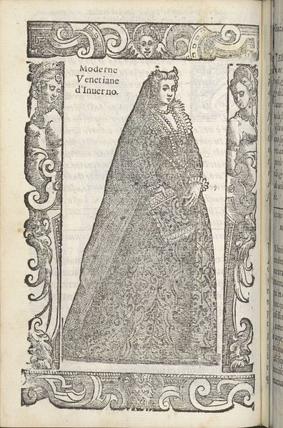 Editor: We're looking at "Vsati in Venetia 1550", an engraving by Christoph Krieger from 1598. The detailing in her dress is remarkable. How would you interpret this portrait through a historical lens? Curator: Well, considering the socio-political context, this engraving serves as a visual document reflecting Venetian fashion and potentially, societal ideals of the late 16th century. The precise rendering of the dress allows us to see it as more than just a representation; it signifies status and perhaps, aspirations. The attire itself likely conveys social standing and adherence to contemporary cultural norms in Venice. But what message do you think an image like this sends to its viewers, then and now? Editor: I hadn't considered it as communicating something that explicit. Maybe fashion was so entwined with societal expectations back then that its presence naturally spoke for them. The clothing then serves almost like a form of visual language! Curator: Precisely. This engraving, therefore, becomes a coded message, understandable within the context of its time. Think about where this print might have circulated – its distribution also informs how its messages were received and by whom. Editor: So, understanding its viewers shapes its interpretation? It becomes a political act of representation! Thank you! Curator: Indeed! Thinking about art as enmeshed within its web of creation and reception changes everything, doesn’t it?