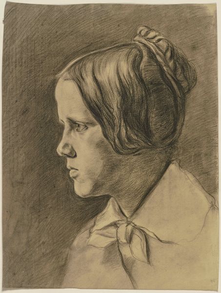 Editor: This is "Young Girl in Profile with Pulled-Back Hair," an etching by Frans Schwartz, created in 1899. There's a somber, almost haunting quality to the way the artist captures the young woman's gaze. How do you interpret this work? Curator: The work feels incredibly contemporary, even though it was created over a century ago. To me, it speaks volumes about the societal constraints placed on women during that period. Consider the gaze; it’s averted, almost resigned. Do you see how the "pulled-back hair" might symbolize a forced conformity, a suppression of individuality? Editor: That's a fascinating perspective. I hadn't thought about the hair that way, more that it was simply the style of the time. But conformity definitely makes sense when thinking about social constraints of the time. Curator: Precisely. And the etching medium itself—a process that demands precision and control—could be seen as a metaphor for the restricted roles available to women then. Schwartz, as a male artist, is capturing not just a likeness but also a feeling. We must ask ourselves, what is his role, as a man, depicting this? Editor: It's interesting you mention his role as a man. It almost feels voyeuristic now that you bring it up. Was it typical for male artists to create such intimate portraits of women at that time? Curator: Intimate, yes, but through whose gaze and for whose consumption? Such portraits, even those seemingly "realistic," participated in shaping and reinforcing societal expectations around female beauty, docility, and submission. Who was this “young girl?" What class, background, identity does she have that informed her experiences? How is this portrayed here? Editor: Wow, I’m definitely seeing this in a different light now. Curator: These considerations aren’t about judging the artist, but understanding how artworks are active participants in shaping broader cultural narratives and systems of power. It requires a lens deeply entrenched in how race, class, and gender affected the sitters, the artwork, and even how it’s interpreted today. Editor: Thanks, that's given me a lot to think about in approaching not just this artwork, but others in the museum.
