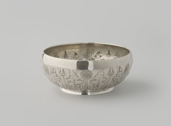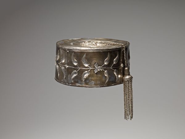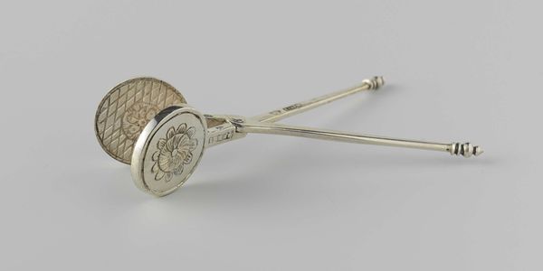 Curator: Before us is a 'Kap van zilver,' or silver cap, dating from around 1785 to 1800, created by Jacobus Carrenhoff. It exemplifies the Neoclassical movement through a decorative art lens. Editor: My first impression? Restraint. The severe form in bright silver suggests the dignity and austerity so sought in the late 18th century, but where is the riotous play of Baroque form and symbol? Curator: Precisely. Consider the metalwork: the pure arc of the band is so smoothly rendered. The formal simplicity speaks of classicism’s revival. Notice too the minimal decoration; this contributes to its cool perfection. Editor: Indeed, and such objects, made of precious metals, must surely signal power. Caps, like crowns or diadems, connote authority. Though in a form shorn of excesses. This must have belonged to a woman who wished to project control, order. Do you see similar symbols in its ornament? Curator: In its small scale floral clasps, perhaps a discreet echo of natural beauty subjected to reason’s firm rule. We find an elegance arising from precision of structure. Editor: Silver also has a curious relationship to folklore: a shield against darkness. While its Neoclassical context projects enlightened rationality, could we also entertain its role as talisman, for this wearer? Did this woman view it purely for its aesthetic design, or with a belief in its potential for symbolic fortification? Curator: A tempting idea. One cannot deny the confluence of rationalism with existing folk belief at this period. Editor: By contemplating how this culture imbued 'Kap van zilver' with meaning – as symbol of power, as exemplar of rational style – the cap bridges past ideas with modern inquiry. Curator: Indeed, reflecting on it in such diverse ways enhances our awareness that function and significance are not invariably disparate.