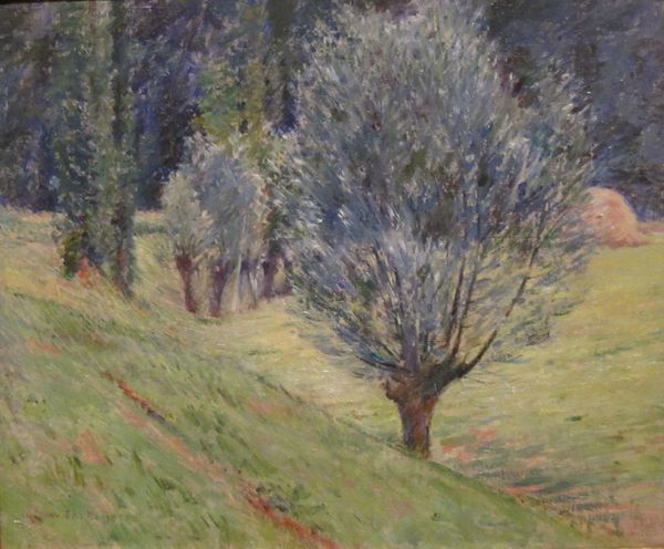 Ferdinand du Puigaudeau made this painting with oil paint, a traditional material for artists at the time. The painting shows a cart at the side of a path, under a tree. You can see the way the paint has been applied in small, separate strokes. This technique gives the picture a lively, shimmering quality, making the whole scene seem to vibrate with energy. It is a clear reference to Impressionism, in which fleeting moments of light and atmosphere were captured with rapid brushwork. However, this style has social and cultural meanings as well. Oil painting, though a slow process, can mimic a sense of immediacy and the sensory effect of seeing. This piece is of interest not only for the scene it depicts, but the relationship between labor, leisure, and landscape, reflected in the very materials and techniques used. It invites us to reconsider the value of the everyday.