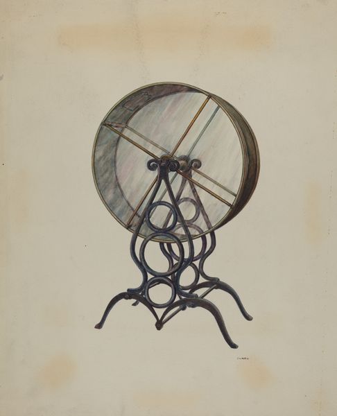 Curator: Here at the Städel Museum, we have Paul Konewka's "Ornament des Nick Bottom als Pyramus mit Garnspule und Schere" from around 1867 or 1868, a delicate ink drawing on paper. What are your initial impressions? Editor: It looks like organized chaos. These dark, looping lines almost feel frantic, but also elegant. I'm drawn to the sense of implied movement within such a contained space. Curator: Konewka was working during a period of significant social and political upheaval. I read this drawing through that lens. Nick Bottom's character from "A Midsummer Night's Dream," as Pyramus, embodies a kind of performative rebellion, right? Editor: The use of a yarn spool and scissors, juxtaposed with the figure, points to a fascinating commentary on the materials available at the time, and how they influence narrative. There’s a clear connection between the means of artistic production and the artwork's themes. Curator: Exactly! This piece, in that context, challenges conventional portrayals of male identity, doesn't it? It's like Konewka's playing with those lines—literally and figuratively. Consider the restrictions placed on theatrical representation, especially for women. Editor: Interesting perspective. From my point of view, these instruments, specifically yarn and scissors, speak volumes about labour of sewing that goes unacknowledged and invisible. These materials offer an explicit statement on creation, work, and perhaps consumption in general. Curator: Indeed, the artist draws parallels between different forms of 'making'—artistic, theatrical, and craft. These elements all meet to question artistic, theatrical and other restrictions imposed during the era on labour and representations. Editor: It encourages us to re-evaluate traditional hierarchies, doesn’t it? The drawing prompts reflections on material limitations within broader cultural, artistic contexts, in society's understanding of "work" as a concept. Curator: I agree. It highlights these hidden processes and acknowledges that artistic expression is deeply embedded in labor and the available materials of the time. It really helps see the role art can play to promote equality and challenge societal expectations, by creating alternate stories that promote different interpretations and inclusivity. Editor: Yes. When seen from this vantage point, this line art takes on deeper connotations, revealing connections between daily experience, creation, material, gender representation. Curator: Reflecting on it, I notice how this drawing reminds us of the ability of art to foster dialogue about challenging subject matter. Editor: Absolutely, looking at it now, I agree, and would now interpret these looping black ink gestures in relation to artistic development and history overall.