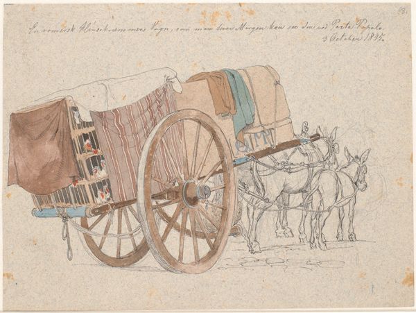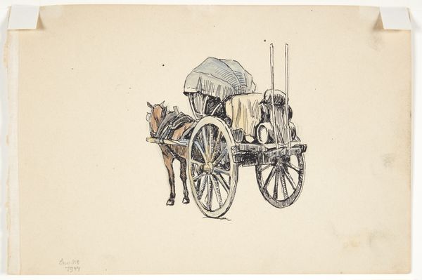 Editor: So, this is Isaac van Ostade's "Study of a Covered Wagon," made sometime between 1646 and 1649. It's a pencil drawing. I’m immediately struck by how much detail he packs into something that's ostensibly a study. What stands out to you when you look at it? Curator: Oh, it’s more than just a wagon, isn’t it? For me, it's like a whispered secret from the Dutch Golden Age. Look at the craftsmanship suggested by those lines, hinting at a life of journeys, commerce, and probably a good story or two. And have you noticed how the simple medium elevates the humble subject? I’m wondering what inspired Van Ostade, did he just see this parked somewhere? Editor: That's lovely. I guess I was seeing it more literally. But you're right, there’s a definite sense of implied narrative here, and a sort of understated grandeur. He uses these really precise strokes that give a feeling of the light reflecting off the wagon. I’m wondering if there is any symbolism behind the choice of subject. Curator: I suspect it’s less about loaded symbolism and more about capturing a moment. But consider the time. Covered wagons were vital, linking town to town. Ostade is elevating a mundane, useful thing into something worth contemplation. How very Dutch of him, wouldn’t you agree? It reminds me that beauty hides in the everyday, just waiting for the artist's touch. Editor: I love that! I see it now – it's like he's finding the extraordinary in the ordinary, just by looking closely. It feels so… intentional. Curator: Exactly! That whisper I mentioned before? That's Ostade telling us to truly *see*. I tell you what, I never thought a covered wagon would evoke such feelings. Editor: Me neither! This makes me want to look closer at everything! Thanks!