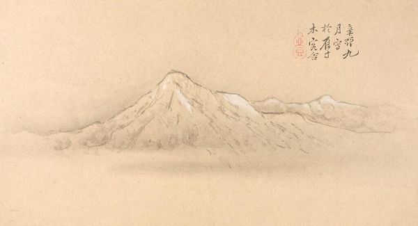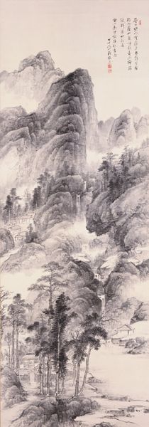 Editor: This ink landscape painting, "Winter Landscape with a Village Nestled amongst Leafless Trees below Snow-Covered Peaks," is in the manner of Kim Myŏngkuk. It's so delicate, almost monochromatic. What strikes you about this piece? Curator: It speaks volumes about resilience in the face of environmental adversity. How does this seemingly serene scene reflect the lived experiences and socio-economic conditions of the villagers depicted? Can art be both beautiful and a subtle commentary on survival? Editor: That's a perspective I hadn't considered. I was just appreciating the artistry. Curator: Art always exists within systems of power. Landscapes, seemingly neutral, can be potent symbols of ownership and control. Thinking about who is represented, and who isn’t, reveals so much. Editor: I see what you mean. Thanks for pointing that out! Curator: Of course. It's about understanding art as a reflection of, and intervention in, the world around us.