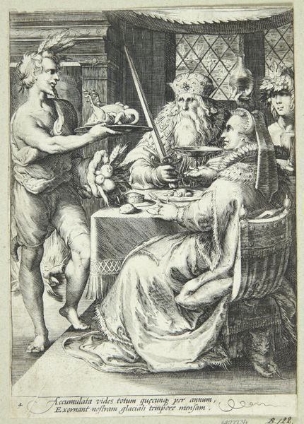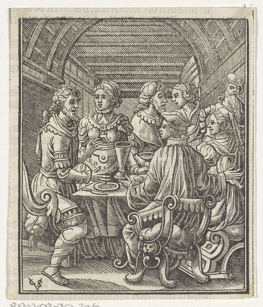This engraving, “The Prodigal Son Amongst the Prostitutes,” presents a scene of excess and moral decay, rendered with meticulous detail by an anonymous artist. The composition is structured around a table laden with food and drink, a focal point that draws the eye into the dissolute gathering. The use of line is particularly striking, creating texture and depth that invites a reading of the work through a semiotic lens. Notice the figure drinking, his gesture almost grotesque, contrasting with the tender exchange between the son and the prostitute beside him. Above, a figure spies on the scene, a banner unfurling with a warning. The engraving challenges fixed meanings, presenting the biblical narrative in a setting stripped of any moralizing tone. Its enduring appeal lies in its capacity to provoke ongoing reflection, a testament to how art embodies cultural and philosophical discourses.