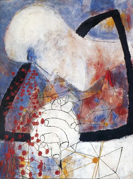 Wifredo Lam made this painting, "Mofumbe", using oil on canvas, and it is HUGE. I love how the colors here are both vibrant and muted at the same time, creating this kind of dreamlike space that makes it really unclear what's up and what's down. When I look at this painting, I feel like I can almost taste the paint. Lam’s brushstrokes aren't trying to hide anything. You can see how he built up the layers, like in the top left corner, where the brushstrokes move in all different directions. It's a reminder that painting is really about the process, the back and forth, the push and pull. Lam reminds me a little of Picasso, whom he knew. Like Picasso, Lam was always trying to find new ways to represent the world, but Lam brought a completely unique sensibility to the project. So much of art is just this ongoing conversation across time, each artist building on what came before, but always with their own voice.