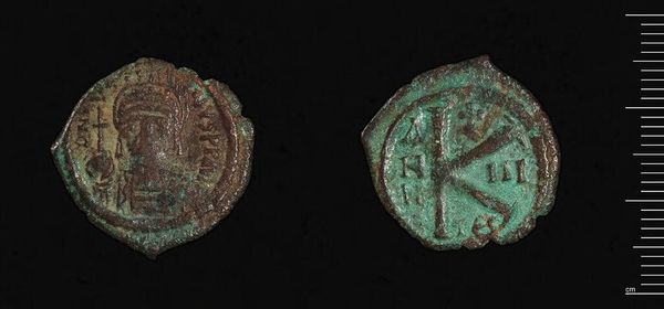 Editor: Here we have the Coin of Justinian I, made during his reign. It's a weighty coin, almost 21 grams, isn't it? It's interesting how something so small could represent so much power. What do you see when you look at this coin? Curator: This coin represents a critical intersection of power and image. Justinian I strategically used his likeness to project authority and divine right. How does this use of imagery compare to contemporary political branding? Editor: That's fascinating! It's like an ancient form of propaganda. I hadn't considered it in that light. Curator: Precisely. It serves as a potent reminder that even the smallest artifacts can reveal complex power dynamics and underscore the enduring impact of visual representation on societal structures. How does examining such objects challenge your preconceptions? Editor: This really highlights how art can be a tool, and how important it is to look beyond just the aesthetic qualities. Thank you. Curator: Indeed. Let's continue to critically examine these intersections of art, power, and identity.