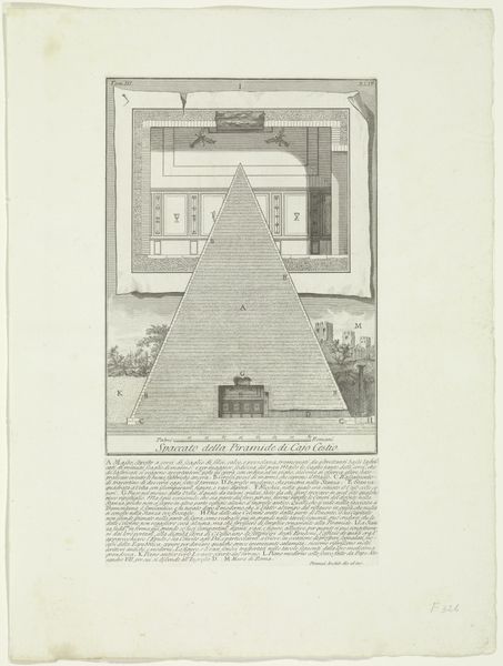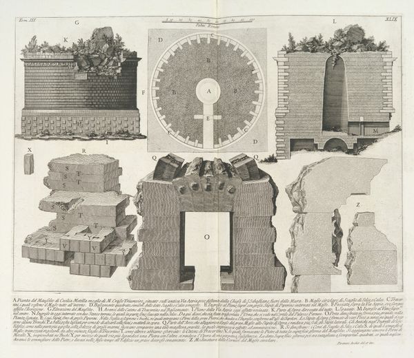 Editor: Here we have Giovanni Battista Piranesi’s "Doorsnede van boog van Engelenbrug te Rome," or "Section of the Arch of the Bridge of Angels in Rome," created around 1756-1757. It’s an etching and engraving printed on paper. It strikes me as a really intricate, almost obsessive, rendering of the bridge's structure. What stands out to you about this work? Curator: The precision certainly grabs attention, doesn't it? For me, the image resonates with layers of symbolic weight. Piranesi's Rome is never simply a physical space; it is a stage for historical memory. This print, in its meticulous detail, is more than just an architectural record. It suggests an almost archaeological yearning to unearth the past and preserve it, even as time relentlessly marches forward. Do you see the contrast between the bridge's imposing mass and the delicate lines of the print itself? Editor: Yes, definitely. It’s like he’s trying to capture something monumental in a fragile medium. I wonder if the architectural drawing style was meant to evoke a sense of scientific accuracy for its viewers. Curator: Precisely! He’s appealing to the Enlightenment ideals of reason and observation, yet he’s also dealing with a subject – ancient Rome – laden with myth and cultural significance. Look at the base of the bridge – the layered stones, almost like a ziggurat. Do these foundational shapes connect with other symbols that would inform the audience's expectations? Editor: I suppose they might subconsciously link it to other powerful, ancient structures? Almost a visual shorthand for "history" and "enduring power?" Curator: Exactly! And what do you make of the bridge itself, reaching across the water, connecting one side to another? What emotional or psychological symbolism could that convey to his audience? Editor: Perhaps connection, transition… crossing from one state of being to another? Curator: Yes! Consider its historical and religious importance – linking the city center to the Vatican. The "Bridge of Angels," in that light, becomes a potent symbol. I find that understanding symbolism really enhances the cultural context of a work like this. Editor: Me too. It’s like decoding a secret language. Thanks! Curator: My pleasure. Every line and shadow tells a story, or perhaps, many.