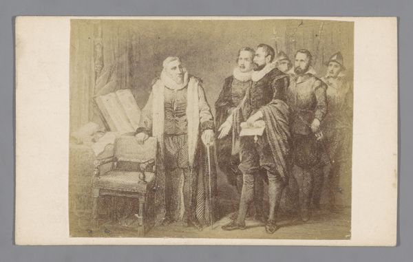 This monochromatic engraving by Edward Dalziel captures a scene of solemnity and grief. The composition is densely populated, arranged around the focal point of the dying King Robert in his bed. The artist masterfully uses shadow and light to convey the emotional weight of the scene. The composition invites a reading of the semiotic codes embedded within. The figure in the foreground, possibly a clergyman, anchors the scene with his presence, while the gestures and expressions of the surrounding figures communicate a range of emotional responses, from despair to stoic acceptance. The use of line and texture not only detail the scene but also create a visual hierarchy, drawing our eye to the King and the emotional responses around him. Dalziel’s work exemplifies how engravings can capture complex narratives. The print prompts us to consider how images like this, circulated through publications, contributed to the collective imagination and cultural memory of historical events. It is not just a depiction of death but a reflection on power, mortality, and the human condition.