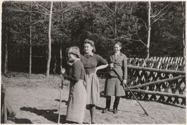 This photograph, titled 'Wasvrouwen' or 'Washerwomen', captures three women engaged in a laundry task with a galvanized tub, a woven basket, and simple textiles. The material reality of this image speaks volumes. The choice of galvanized metal for the tub is significant, reflecting a move towards more durable, mass-produced materials that were becoming increasingly available. The woven basket, on the other hand, hints at more traditional, craft-based practices. Look closely at the women's aprons and headscarves, these details speak to the everyday, working lives of these women, their clothing chosen for practicality rather than display. The photograph itself, with its grainy texture and stark contrast, further enhances the sense of realism, grounding the scene in a specific time and place. Consider the labor involved in the depicted task. Before modern washing machines, laundry was a physically demanding process, often relegated to women. This image, therefore, not only captures a moment in time but also reflects broader social issues of labor, gender, and class. By focusing on the material and the making, we can appreciate the full cultural significance of this seemingly simple photograph, challenging conventional ideas about what constitutes art and craft.