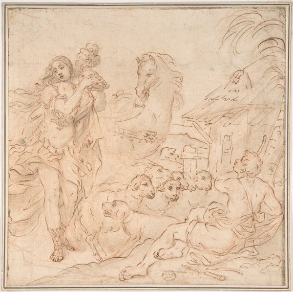 Jacopo Zucchi created this drawing titled, "Allegory on Courage" sometime in the late 16th century. As an artist working in the late Renaissance, Zucchi was deeply influenced by classical antiquity and the humanist revival of his time. In this drawing, Zucchi employs the visual language of allegory to explore the concept of courage, reflecting the era's fascination with abstract ideas and moral virtues. The figures are rendered in dynamic poses with dramatic gestures, imbuing the scene with a sense of theatricality and emotional intensity. But note how the bodies lack definition; each figure appears to be the same. It is as if the courage is not only an external performance, but a singular trait shared among members of the same class. Zucchi challenges us to consider the ways in which courage is embodied, enacted, and perceived in the world around us. It is a mirror reflecting both the aspirations and the anxieties of a society grappling with questions of identity, power, and purpose.