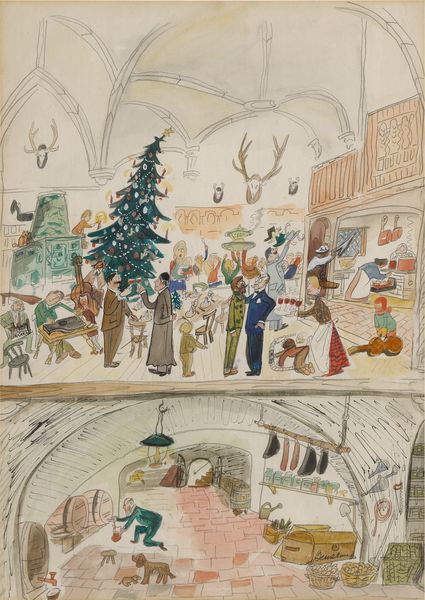 Louis Glackens created "The Toy Department", an illustration depicting a bustling holiday shopping scene, at an unknown date. Glackens, working during the late 19th and early 20th centuries, captured the energy of urban life, here focusing on the spectacle of consumerism. The image overflows with people from various social strata, a veritable cross-section of society caught up in the frenzy of Christmas shopping. Gender roles are subtly on display; women clutch babies while men navigate the crowded store with determination. The figures convey a sense of urgency and perhaps even desperation, emotions that highlight the class dimensions of holiday consumption. What strikes me is the overwhelming nature of the scene, the cacophony of desires and needs colliding in a single space. The artwork, reflecting its time, portrays a society where material possessions increasingly defined status and happiness. It encapsulates the beginning of a modern consumer culture, where shopping became not just a necessity but an emotional experience, fraught with its own anxieties and expectations.