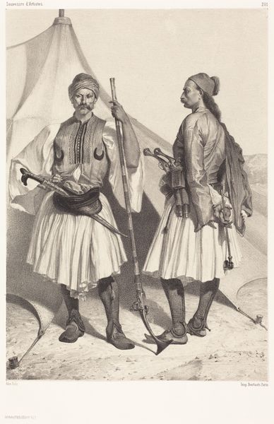 Jan Anthonie Langendijk Dzn made this watercolor painting of two guards of King Louis Napoleon wearing turbans. Created in the Netherlands, during a period when Louis Napoleon, brother of Napoleon Bonaparte, was installed as King, this work presents an intriguing case study in cultural adaptation and control. The figures' elaborate turbans and colorful garments, while seemingly exotic, were in fact part of the official uniform. The painting reflects the complex political landscape of the time. France, under Napoleon's rule, exerted considerable influence over the Netherlands, leading to the adoption of French customs and institutions. Yet, the Dutch also sought to maintain a sense of national identity. The turban could have been a feature of their uniforms as a nod to the Dutch Republic's historically robust trade with the Ottoman Empire. Delving into archives and historical records from this era could reveal more about the reasons behind these sartorial choices. Art is always a product of cultural and institutional forces.