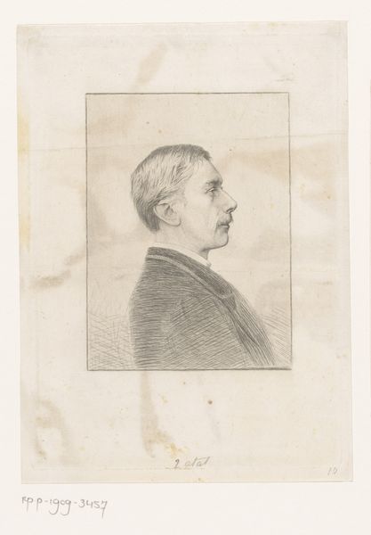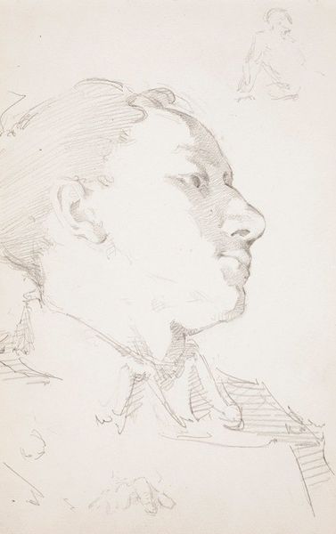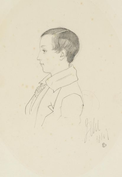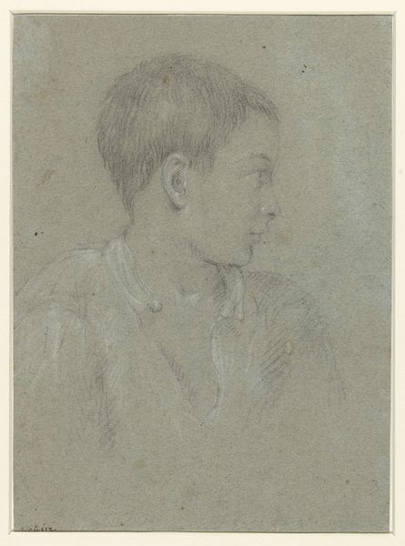 Curator: Here we have William Valentine Schevill’s "Drawing of a Boy," held at the Harvard Art Museums. Editor: It's a profile, mostly gray, conveying a quiet, almost melancholic mood. Curator: Note the pencil work and the paper itself. The texture is quite present, almost as significant as the subject, emphasizing the handmade nature of the drawing. Editor: The medium is crucial; it signifies accessibility. Pencil and paper are tools of learning, available across classes, democratic in spirit. Curator: True, and it prompts us to consider access to education and artistic training in the 19th century. Who was able to produce such drawings, and whose labor went unnoticed? Editor: Its subtle grace is captivating. I admire how such simple materials yield such compelling and emotive contours. Curator: Agreed. The study transcends its form and the boy transcends his class. Editor: Indeed. Such an understated masterpiece.