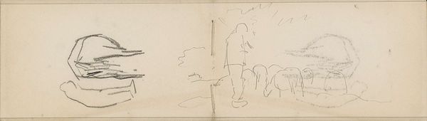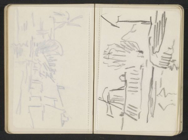 Editor: This drawing, "Figuurstudies," by George Hendrik Breitner, created sometime between 1886 and 1923, is a study of figures done in graphite on paper. I’m struck by how unfinished it feels, like a quick glimpse into a bustling scene. What do you see in this piece? Curator: The immediacy you observe is crucial. Breitner was working at a time of rapid urbanization in Amsterdam, documenting everyday life, particularly of working-class women. This sketch isn't just about form; it's about capturing a moment, a feeling of modern life as it unfolds. Note the groupings of figures and ask yourself what social interactions or class structures are suggested, however subtly, even in this unfinished state. Are these figures empowered actors in their own right, or are they represented as victims of circumstance? Editor: That’s interesting, I hadn’t considered it in terms of class. The sketchiness almost makes them anonymous. Does that anonymity tie into a broader theme? Curator: Absolutely. Think about the rapidly changing urban landscape. The anonymity can be read as a reflection of the alienation and displacement that accompanied modernization. Were these women afforded the luxury of individual recognition in such a climate? Consider also the male gaze – who is Breitner in relation to these figures, and what power does he wield as an artist documenting their existence? Editor: So it’s about both capturing a moment in time and critiquing the social context of that moment? Curator: Precisely. It invites us to reflect on how rapid social change impacts individual lives and identities, especially for marginalized communities, and how art can serve as a document and a critical lens for those issues. Editor: I’ll never look at an Impressionist sketch the same way again. Thanks! Curator: My pleasure. It’s about looking beyond the surface to understand the complexities beneath.