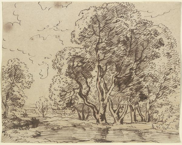 Augustinus Wouters created this etching, "Three Trees on a Shore," using ink on paper. It’s a classic landscape, reminiscent of the Dutch Golden Age, but made in the 19th century. Artists at this time were questioning the role of art and its institutions. Was it simply to replicate tradition, or could it serve a more progressive function? Wouters lived during a period of industrialization, so it's tempting to view this work as nostalgic for a pre-industrial past. However, it’s more likely an exploration of the eternal qualities of the Dutch landscape. We see the influence of the Hague School of painting, which sought to capture the natural light and atmosphere of the Netherlands, but within the more easily reproducible medium of etching. Understanding the art of the 19th century requires us to look beyond the surface of what is represented and consider the social and economic conditions that shaped its production. Museum archives and historical societies can help provide insight into the artist’s world.