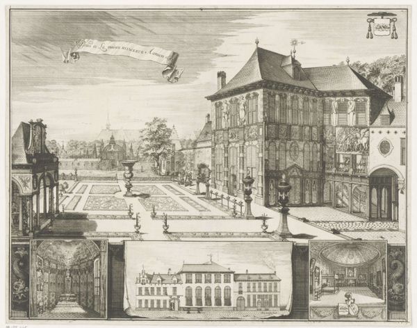 Editor: So, this print is called "Huis te Werve" by Cornelis Elandts, dating back to sometime between 1663 and 1670. The material is engraving. It's quite detailed, almost like a map. What strikes me most is the contrast between the formal gardens and the grand architecture. What can you tell me about it? Curator: The print offers a fascinating look into the materiality of 17th-century Dutch estate culture. Consider the immense labor required to create and maintain those formal gardens, and how the engraving itself – the meticulous lines etched into the plate – mimics this level of control and manipulation of the natural world. What social classes would be reflected in this mode of representation and production? Editor: I imagine this kind of print was probably commissioned, serving as some kind of status symbol for the wealthy landowners who owned the estate. Curator: Exactly. These prints circulated among a specific demographic and perpetuated a particular worldview, showcasing their power through depictions of their cultivated environment. Think about the division of labor: the artist creating the print, the gardeners tending the grounds, all supporting the image and the reality of the landowner's dominance. It also highlights the consumption of materials: ink, paper, plants, land... what impact might the proliferation of these images had on society at large? Editor: It probably idealized a lifestyle that was inaccessible to most, maybe even driving further social stratification. Curator: Precisely. The "Huis te Werve" isn't just a landscape, it's a document reflecting the social and material realities of its time. Editor: Seeing it through the lens of materials and production makes it much more than just a pretty picture. Thanks for the insights. Curator: My pleasure. Hopefully you'll continue to see the layers beneath the surface!
