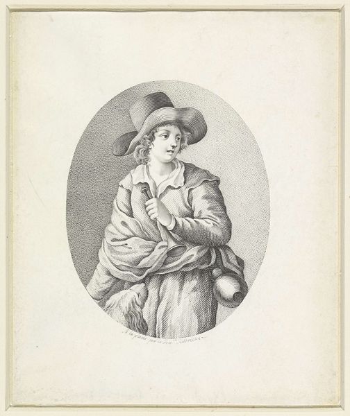Editor: This is "Vrouwenkop," possibly from 1791, by Elzenerus Helmigh. It's a coloured-pencil drawing. It strikes me as a pretty straightforward portrait, but there’s a fragility in the lines that I find captivating. How do you interpret this work? Curator: This piece invites us to consider the role of women in the late 18th century and how they were perceived and portrayed. The Neoclassical style often emphasized idealized beauty and virtue, but here we see something different. Notice the slightly averted gaze and the loose, almost unfinished quality of the drawing. Does that strike you as aligning with or diverging from typical portraiture of the time, and what does that say about how the artist, or even the sitter, may have seen her role in society? Editor: That’s a great point about the averted gaze. It does make her seem less like a grand lady and more like an everyday woman. So, are you saying this could be a subtle commentary on gender roles? Curator: Precisely! We need to ask, whose gaze are we seeing her through? The artist’s? The presumed male viewer’s? Or, is she, through this pose, reclaiming some agency by subtly defying the objectification inherent in portraiture? The context of the Enlightenment, with its evolving ideas about individual rights and social reform, is crucial here. Could this be a quiet rebellion expressed through art? Editor: I see. So, beyond just being a pretty face, it's potentially a statement about female identity and power? Curator: Exactly. And consider the unfinished nature of the sketch – perhaps reflecting the incomplete nature of women's emancipation at that time. It makes me wonder about the woman's class and her life choices as well, it pushes me to research this more and understand the subject’s individual experience within a broader movement. Editor: That gives me a lot to think about. I’ll never look at a portrait the same way again. Curator: And that’s the point! To keep questioning the stories we tell ourselves through art and uncover the hidden narratives within.