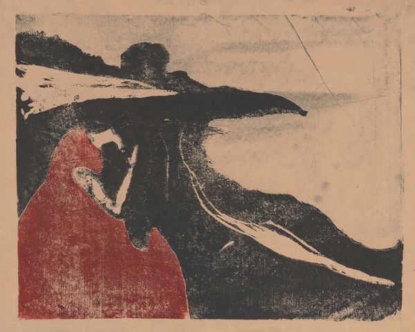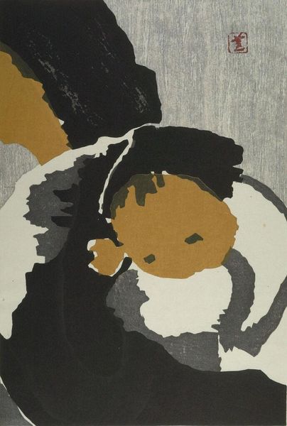Editor: Here we have "Maiko" by Kiyoshi Saito, date unknown, it has the aura of a memory or a cherished story, I'm curious about what’s at play. What do you see in this piece, what story do you think it is telling? Curator: I see layers of cultural encoding in the "Maiko." It presents a young apprentice geisha. This imagery carries echoes of tradition, femininity, and performance. Saito simplifies the form. This can highlight specific attributes. Do you see how the stark white face contrasts against the darker hues? What feelings does it evoke? Editor: I think, it emphasizes a youthful innocence but also an otherworldly quality almost, it looks dream-like! Curator: Exactly. White face makeup in Japanese culture isn't just about appearance; it's transformative. It connects individuals to a heritage. Her gaze averted. She seems lost in introspection. Even that single floral emblem – what do you make of that recurring motif in Japanese art? Editor: I feel like I’ve seen this motif repeatedly in other pieces as well. Curator: Absolutely. Flowers bear considerable meaning. A singular bloom can signify fleeting beauty. Saito seems to explore concepts of cultural identity but it makes one ponder the complexities of identity and representation. Editor: It's like the image itself becomes a vessel filled with layers of significance. Thanks, that's really insightful, it helps me to understand a whole world behind a simple portrait. Curator: Indeed. By understanding how an artist uses visual language, we can gain access to historical and psychological depths otherwise hidden from plain sight. It offers continuous paths for understanding the world!